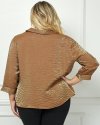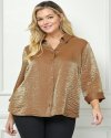Add a touch of elegance to your wardrobe with this shimmering textured blouse. Featuring a classic button-up front, a soft collar, and three-quarter sleeves, this piece is perfect for day-to-night transitions. Its crinkled texture and subtle shine create a luxurious yet effortless look.Shimmering crinkled texture for a chic finishButton-up front with a soft collar for a polished lookThree-quarter sleeves with buttoned cuffsPerfect for both casual and dressy occasionsLength 30'