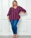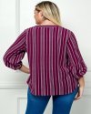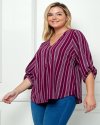 A versatile striped V-neck blouse designed for both casual and dressy moments. The roll-tab sleeves allow you to switch up your style, while the subtle button detail adds a hint of charm. With its relaxed fit and timeless stripe pattern, this top is perfect for any occasion, offering comfort and effortless chic.Stylish vertical stripe pattern for a flattering silhouetteRoll-tab 3/4 sleeves for adaptable stylingV-neckline with a sleek button detailLightweight fabric thatu2019s comfortable for all-day wearLength 29 1/2'