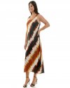 A vibrant sleeveless maxi dress with a bold, diagonal print in warm, earthy tones.Lightweight and flowy fabricSleeveless design for easy summer stylingRelaxed fit with a flattering A-line silhouettePerfect for casual outings and vacationsLength 54 3/4'