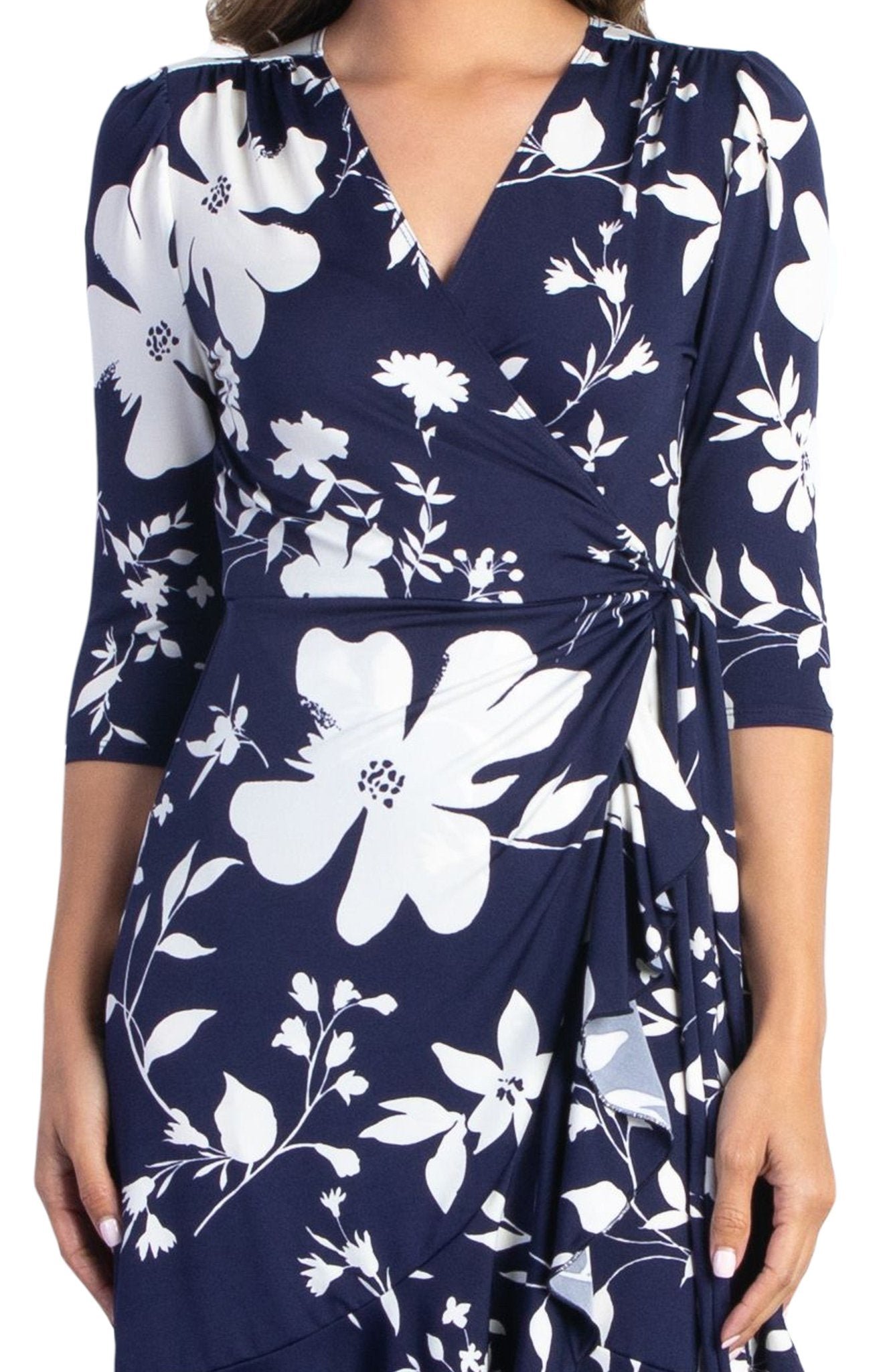 The Flirty Flounce Midi Wrap Dress features cascading flounces on the skirt and bottom hem. This functional wrap provides adjustable coverage and flattering 3/4 length sleeves. Perfect for cocktail and special occasions, work, and as a wedding guest dress.-Material: 95% Polyester, 5% Spandex-Care Instructions: We recommend machine washing in cold water on the gentle cycle. Do not bleach. Lay flat to dry. Cool iron when needed.-Product Fit: AdjustableProduct Specifications:-Fully functional midi wrap dress with tie.-Perfect for work, wedding guest, cocktail or any special occasion.-3/4 length sleeves.-Made with love in the USA.