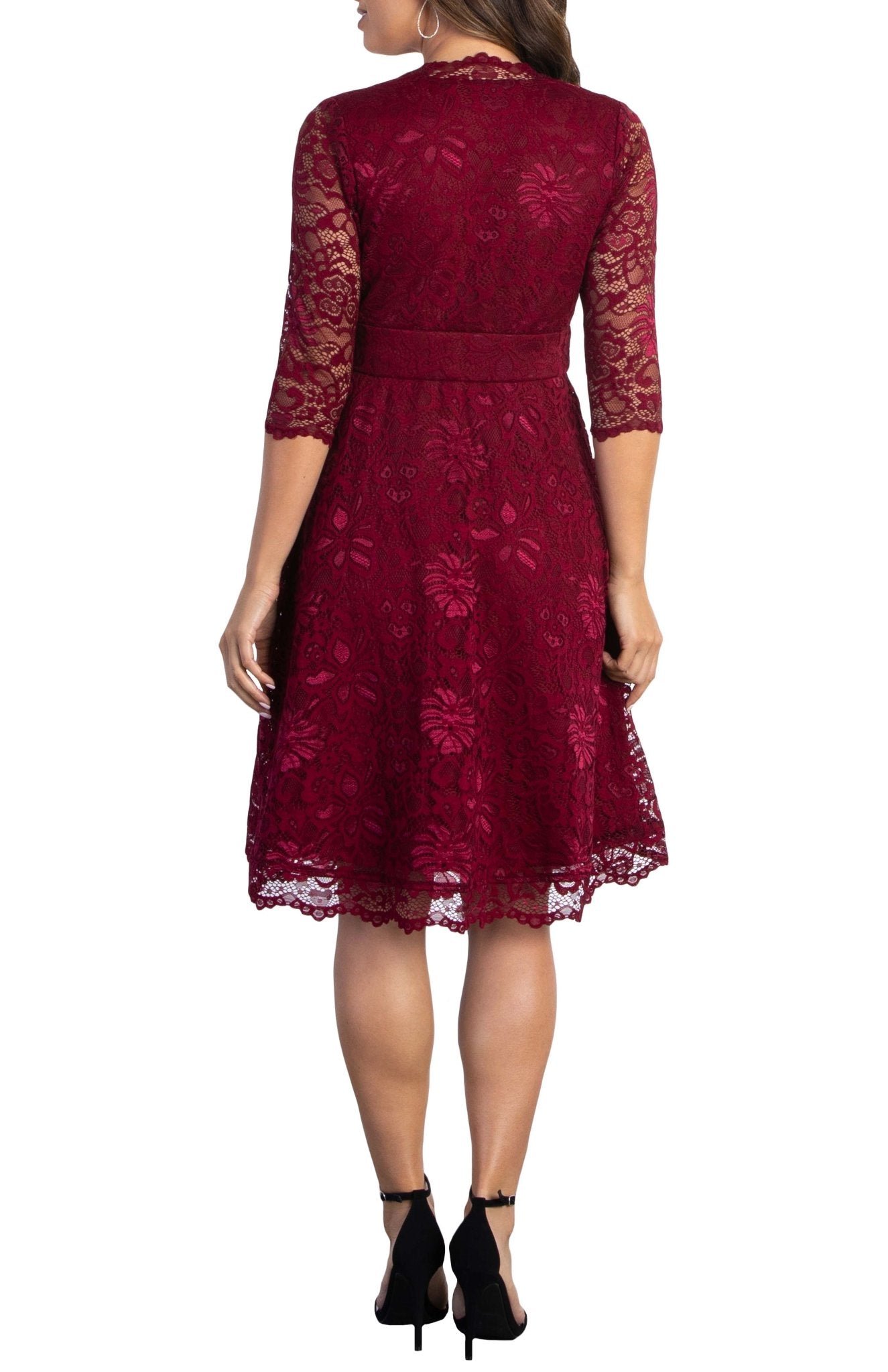 The Mademoiselle Lace Cocktail Dress is a special occasion A-line midi length dress with scalloped lace and fit and flare silhouette. Party perfect for day, evening, formal, semi-formal, wedding guest, bridesmaid, and mother of the bride / groom. Available in women's regular and plus sizes.-Material: Self: 92% Nylon, 8% Spandex/Lining: 96% Polyester, 4% Spandex-Care Instructions: Dry clean only. Do not steam. Cool iron when needed.-Product Fit: A-LineProduct Specifications:-Soft stretch lace, A-line, and pull on style.-Perfect for work, wedding guest, cocktail or any special occasion.-2x length measures approximately 45' from high point of shoulders to hem.-Made with love in the USA.