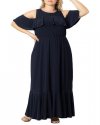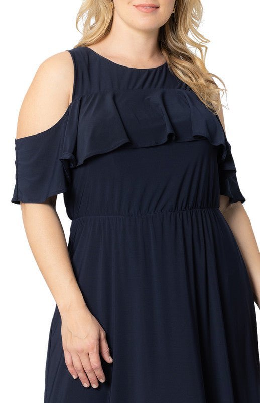 RSVP yes in our plus size Piper Cold Shoulder Maxi Dress. This flowy maxi dress features a softly defined elastic waist, flounce detailing at the hem, and a modest neckline with a flounce along the chest that transitions into cold shoulder sleeves. Made exclusively in women's plus sizes.