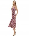 A stunning floral slip dress with a rich burgundy background, featuring pink, white, and gold accents. This midi-length dress is perfect for both casual and formal events.Midi length for a flattering, elegant silhouette.Burgundy base with vibrant floral print.Spaghetti straps with a relaxed fit.Lightweight fabric, ideal for warm weather.Length 47 3/4'