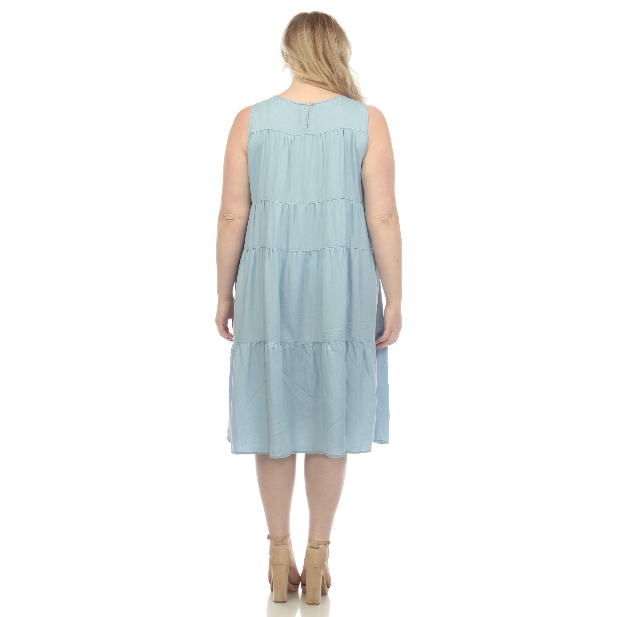Experience the ease of dressing up without the fuss. Elevate your everyday look with our Chambray Sleeveless Crew Neck Tiered Ruffle Dress and discover the perfect balance between comfort and style. Features a tiered ruffle design and a classic crew neck that creates a flattering silhouette that suits all body types. Whether you're heading for a weekend brunch, a day at the beach, or simply running errands, this dress is the perfect choice for an effortless yet chic look.-Care Instructions: Machine Wash Cold-Material: 100% tencelProduct Specifications:-Scoop Neck-Tiered-Side Pockets