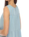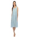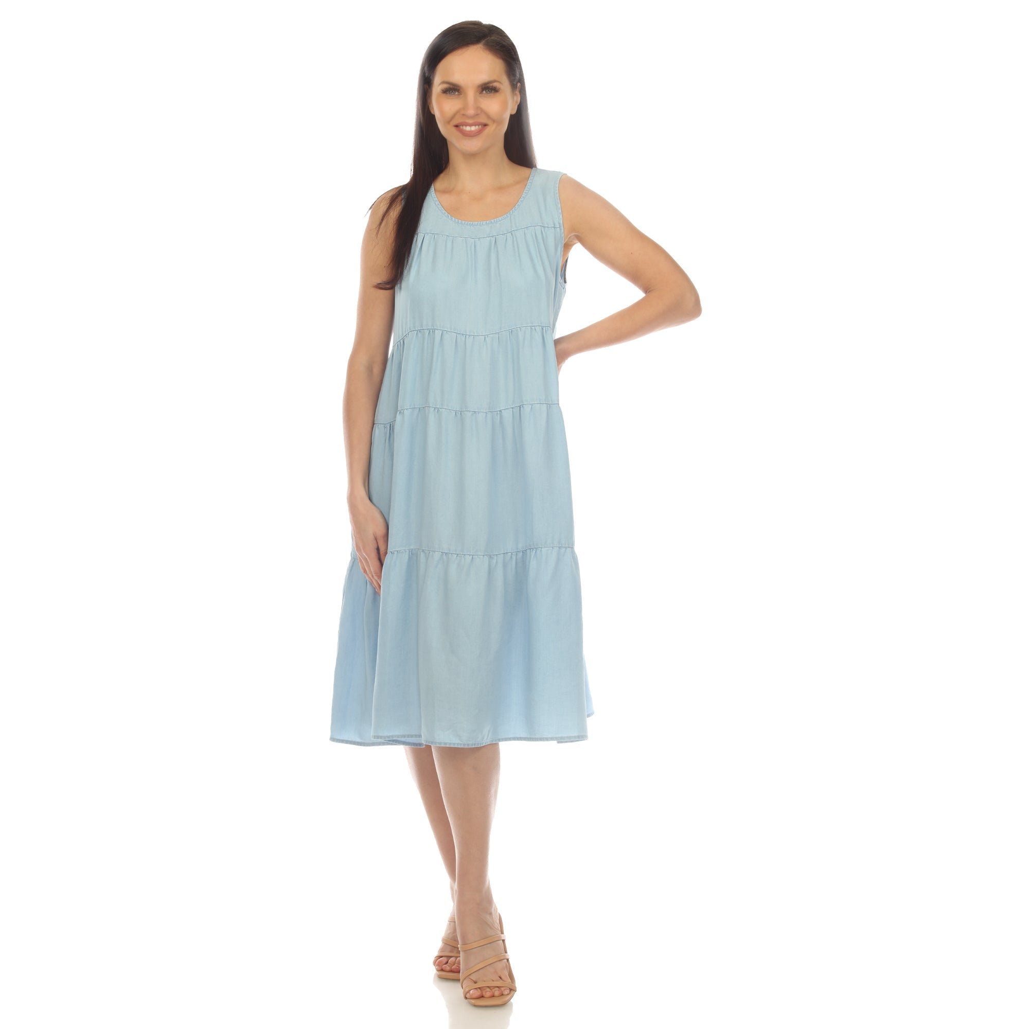 Experience the ease of dressing up without the fuss. Elevate your everyday look with our Chambray Sleeveless Crew Neck Tiered Ruffle Dress and discover the perfect balance between comfort and style. Features a tiered ruffle design and a classic crew neck that creates a flattering silhouette that suits all body types. Whether you're heading for a weekend brunch, a day at the beach, or simply running errands, this dress is the perfect choice for an effortless yet chic look.-Care Instructions: Machine Wash Cold-Material: 100% TencelProduct Specifications:-Scoop Neck-Tiered-Side Pockets